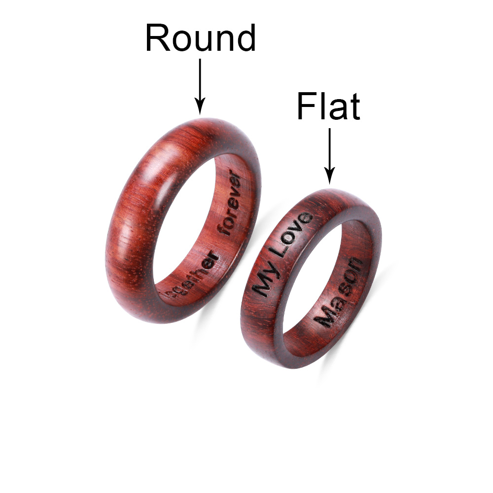 Everybody has a ring or two, but have you tried wooden ring? Sounds cool! And wood is usually considered durable, thus used to express the strength of marriage. Our Pterocarpus ring is handcraft polished, making it extremely smooth, and it's dark-red color and special texture making it more eye-catching and desirable! It's not at all heavy but comfortable to wear. Not to mention you can engrave the words you love or names you want on it, personalize one of your own! It's the perfect ring for all! Especially suitable if you are looking for a 5th anniversary gift!